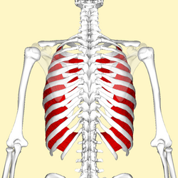 English: Internal intercostal muscles (shown in red).