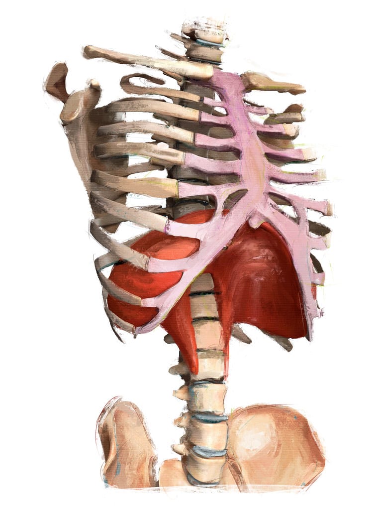 Just as a squat requires the proper involvement of the ankles, knees, hip muscles, and core, diaphragmatic breathing requires the proper muscular involvement of the diaphragm, the core, and your intercostals.